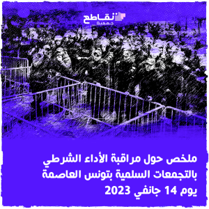 وفي تونس، أوضحت المنظمات أن السلطات لجأت أيضًا إلى العنف والقمع لإسكات التجمع السلمي، حيث استخدمت قوات الأمن الغاز المسيل للدموع والرصاص المطاطي لتفريق المتظاهرين، واعتقلتهم واحتجزتهم – بمن فيهم العديد من القاصرين -، دون اتباع الإجراءات القانونية الواجبة، كما قاموا بمضايقة الصحفيين لإجبارهم على تسليم لقطات، وأعلنت الحكومة عن قانون جديد يقيد بشدة الحق في التجمع السلمي والتعبير.